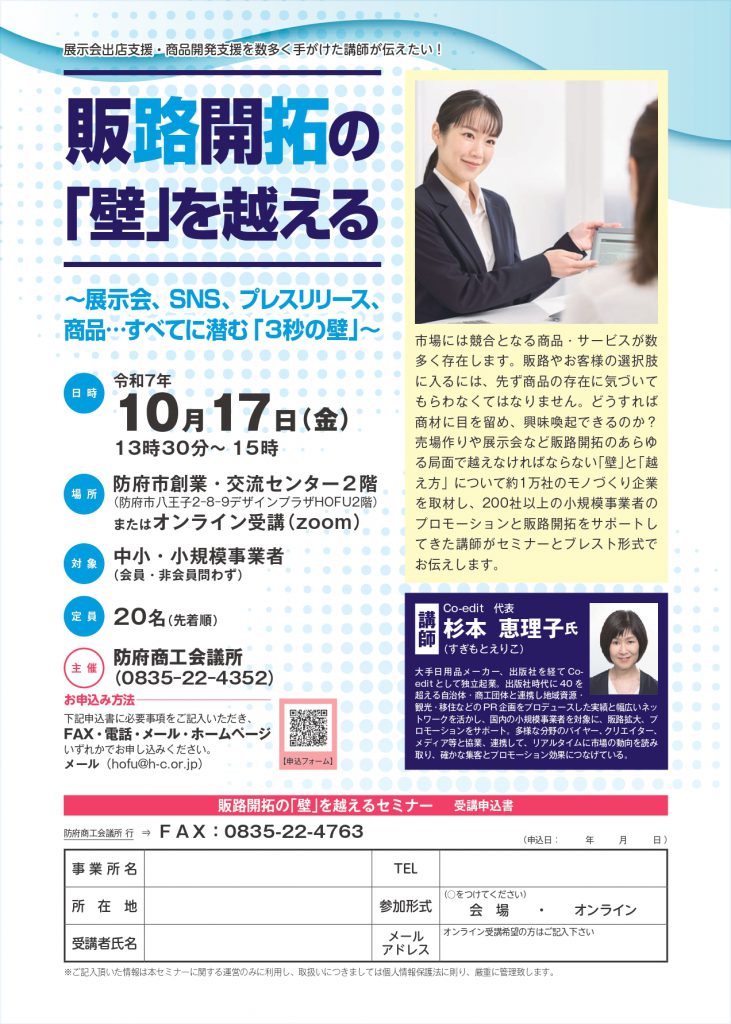 > お知らせ > 10月17日(金) 販路開拓の「壁」を超える!セミナーを開催します 10月17日(金) 販路開拓の「壁」を超える!セミナーを開催します 参加ご希望の方は下記フォームからお申し込み下さい。受講のお申込はこちらから【申込フォーム】 ≪NEXT │お知らせ一覧│ BACK≫
