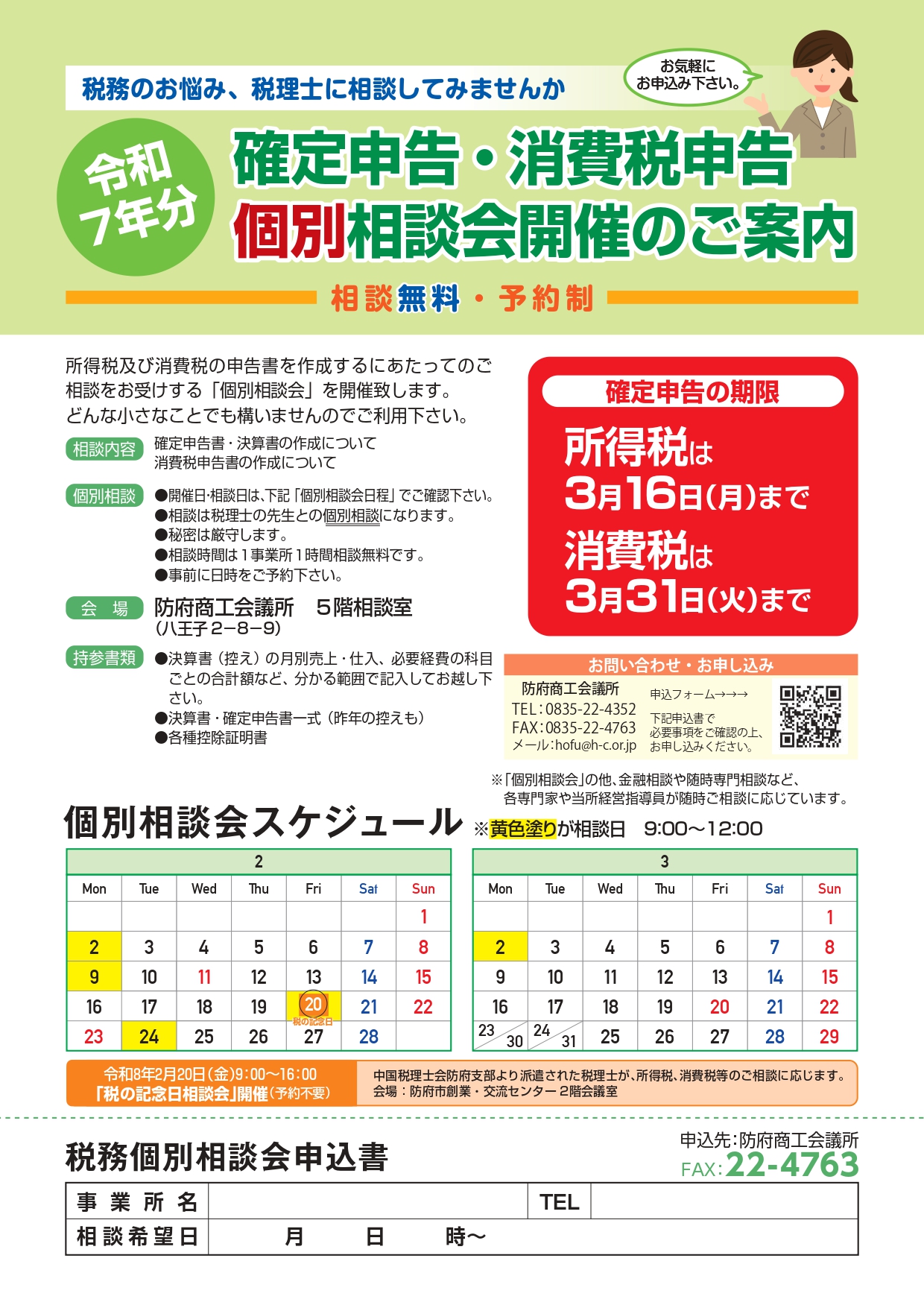 □令和7年分 確定申告・消費税申告 税務個別相談会 申込フォーム